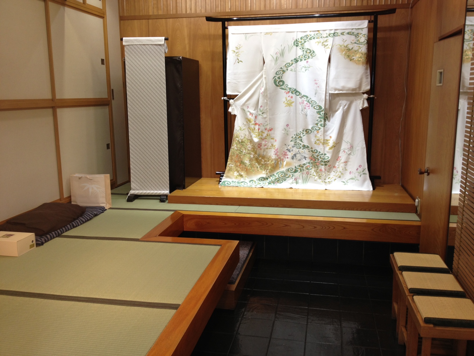 でも畳の縁があって、着物をひきたてるいい脇役になってると思います