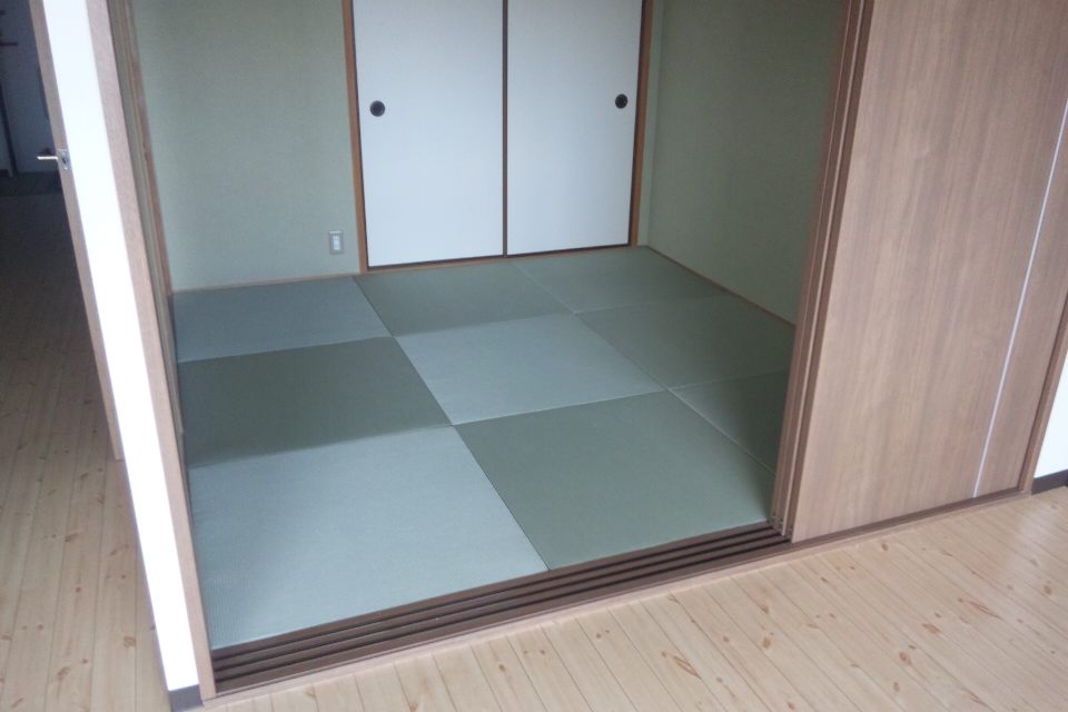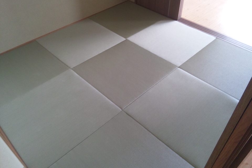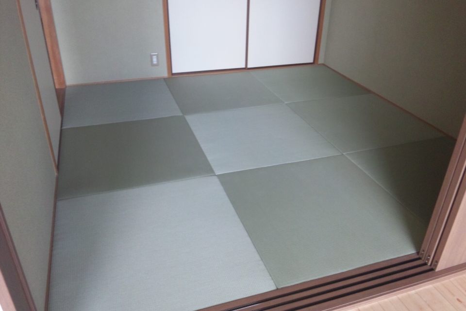 少しリーズナブルな琉球畳をとリクエストがあって 「気分草快バサラ」という畳表をつけました。 マンションのリニューアル工事でうけました ダイケン清流と比べると少し色がグレーぽいです 材質は紙ではないので、スチームなどの熱による加工が あまり効果がりませんでした 意外と加工がむずかしい・・・ 主に折り目をつけるのがたいへんでした。 なんとか敷き込みましたが課題有です