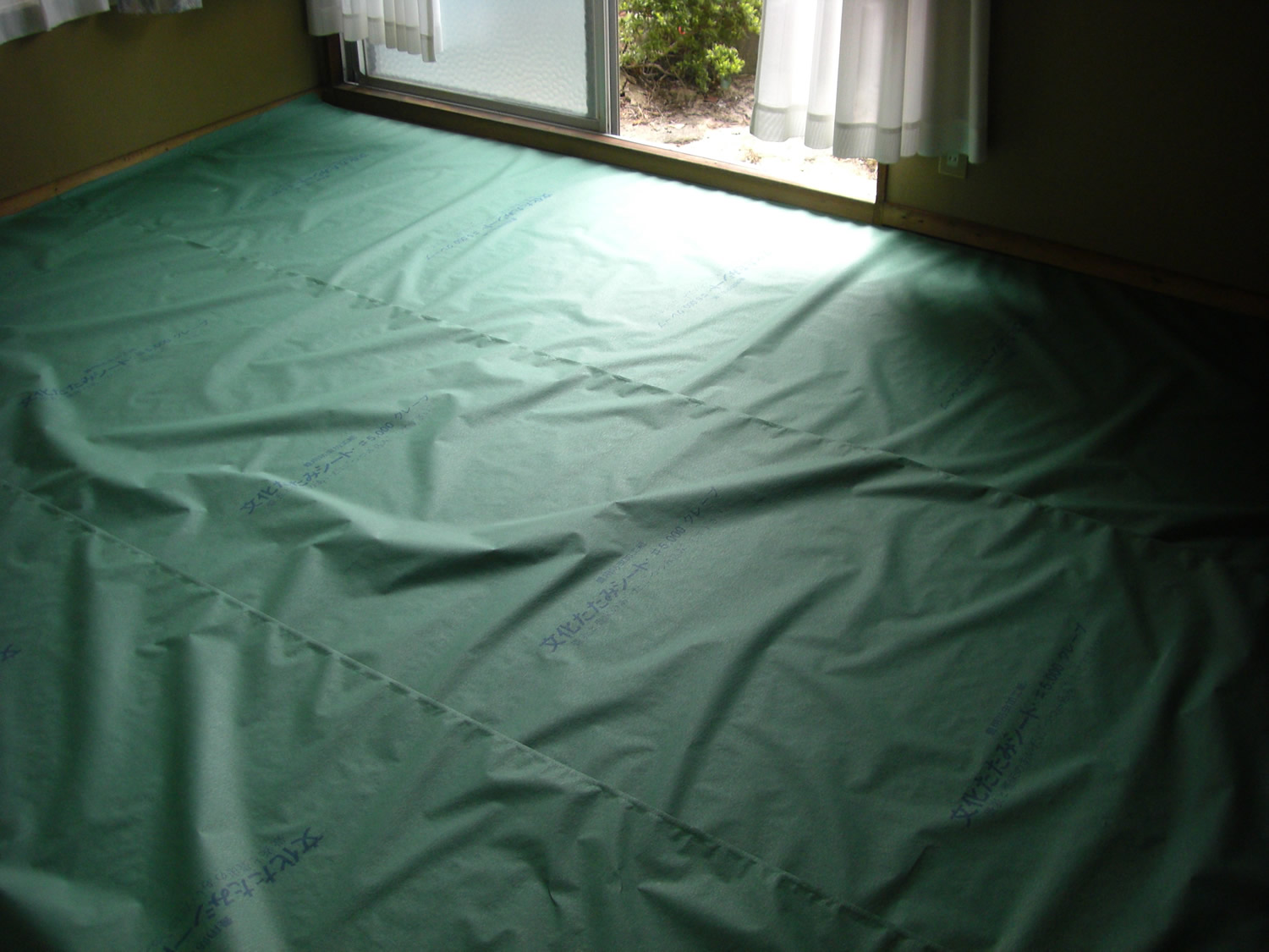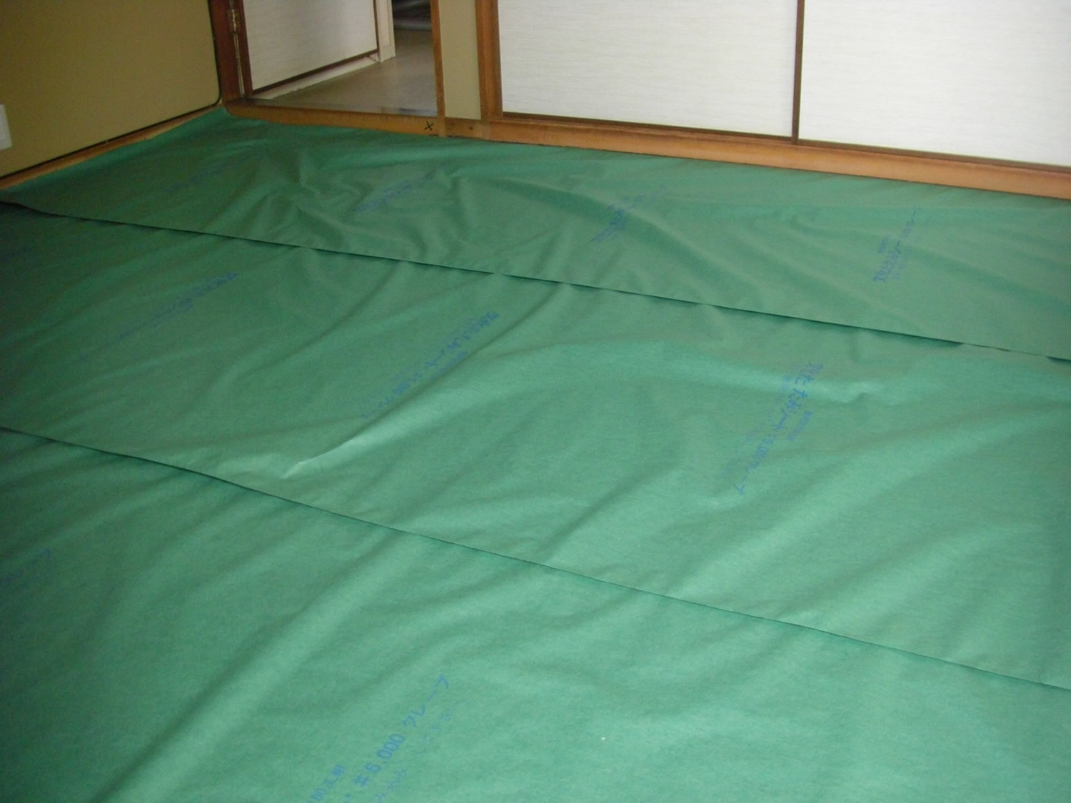 防虫紙もしくと、床材が化粧合板なので、床と防虫紙の間に